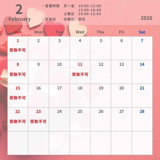 やむを得ず変更・キャンセルされる場合は、受取日から2営業日前までにご連絡をお願いいたします。