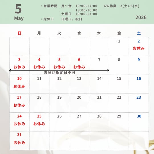 【2026年GW期間中のお届けについてのお知らせ】