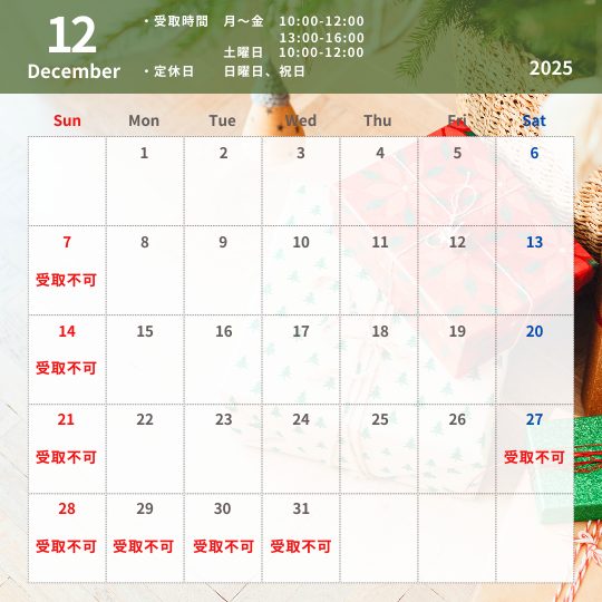 ※日曜日祝日は、休業日のため営業日には含まれません。下記カレンダーもご参照ください。