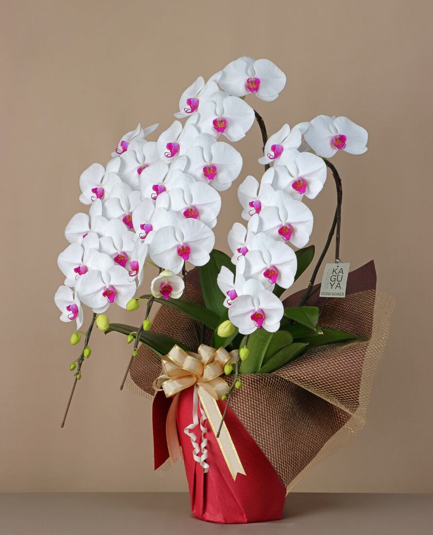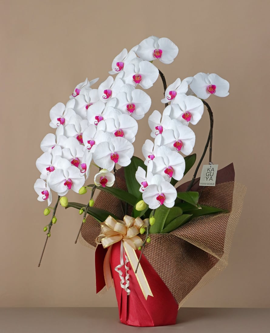 ・胡蝶蘭は生花のため、開花具合・色味・株の大きさに個体差があります。