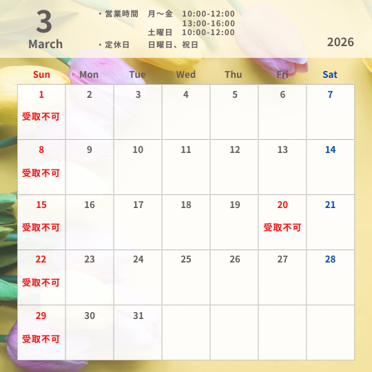 【定休日】(受取不可)