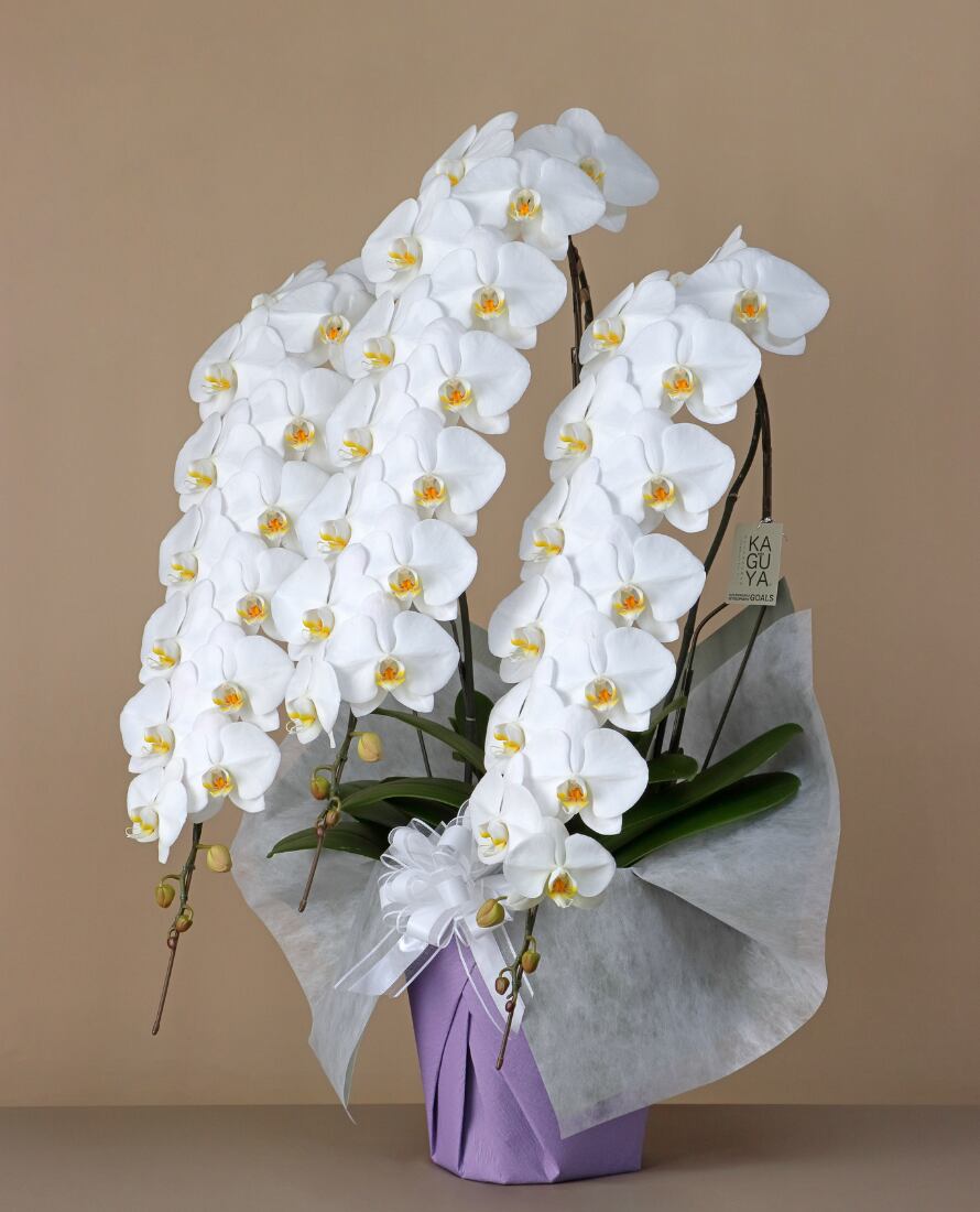 ・胡蝶蘭は生花のため、開花具合・色味・株の大きさに個体差があります。