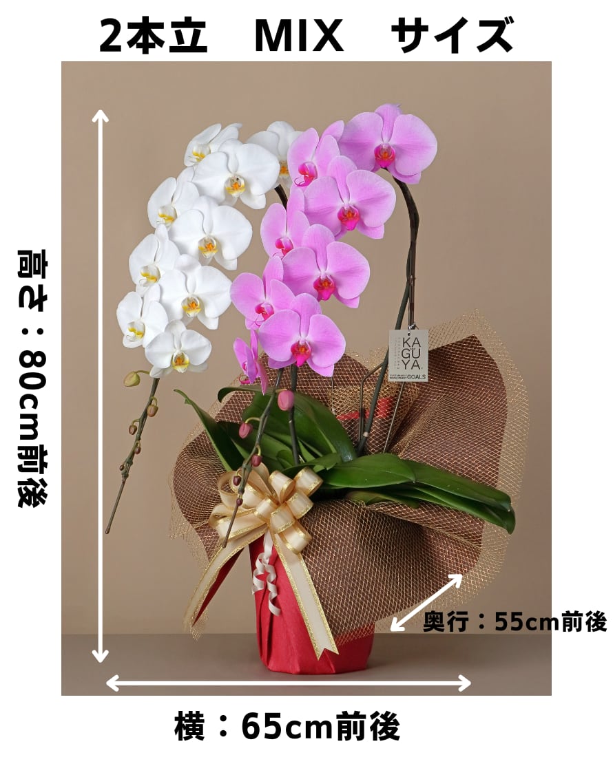 ・胡蝶蘭は生花のため、開花具合・色味・株の大きさに個体差があります。