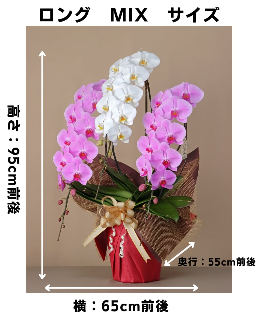 3本立 ロング(42輪~45輪程度)ミックス【彩り豊かな特別感あふれる一鉢】異なる色の調和が美しく、目を引く華やかな仕上がりに仕上げました。他とは違う華やかさを求める方におすすめです。