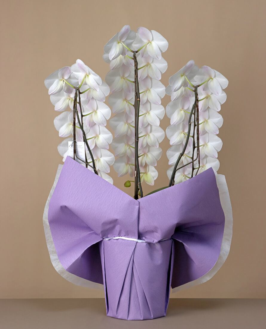 ・胡蝶蘭は生花のため、開花具合・色味・株の大きさに個体差がございます。